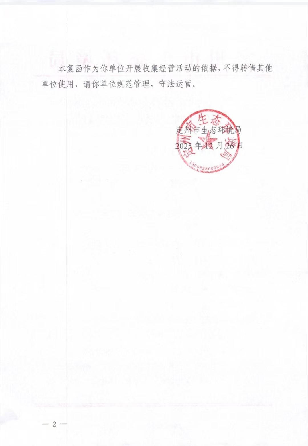 关于同意河北乾洲再生资源回收有限公司废铅蓄电池收集试点资质延续的函